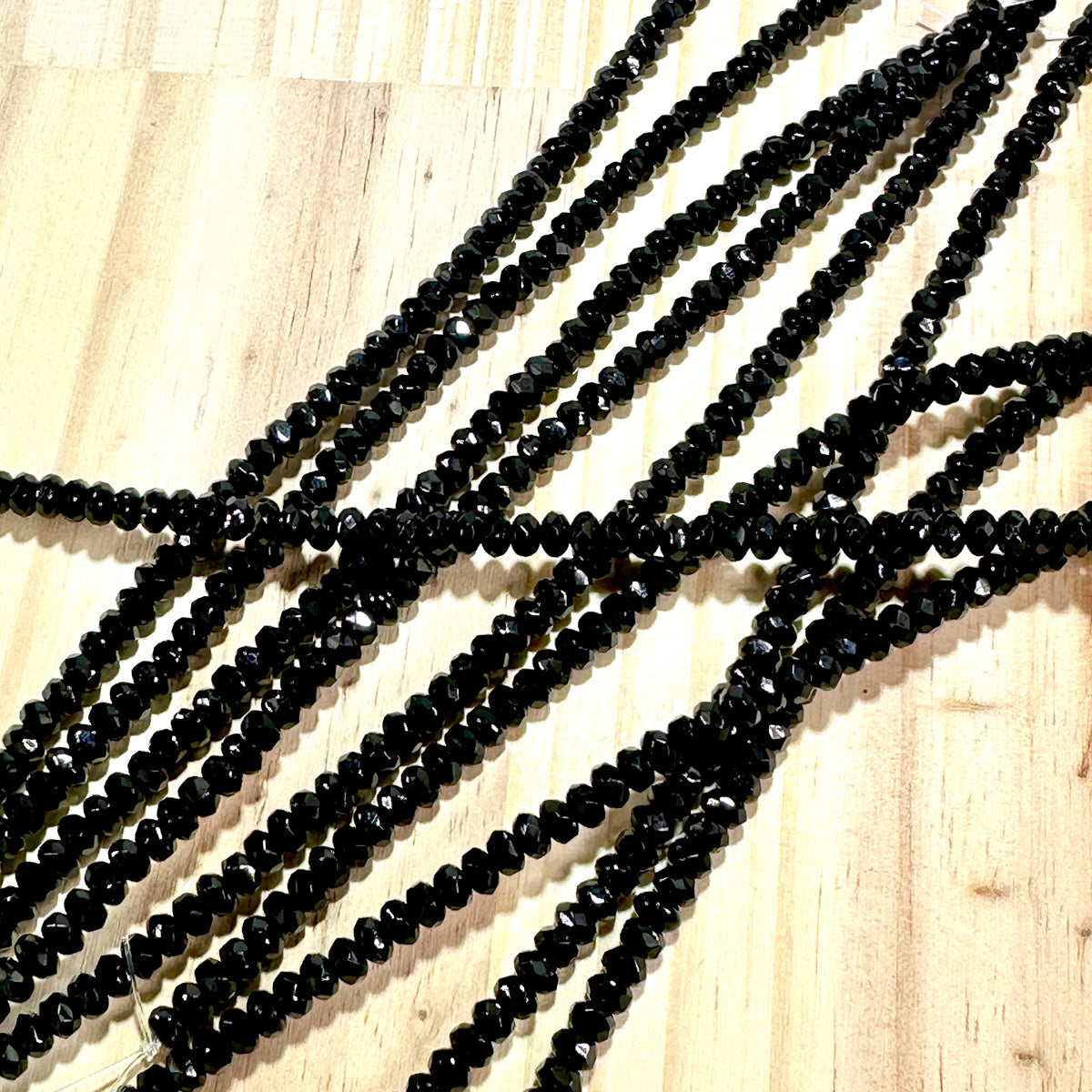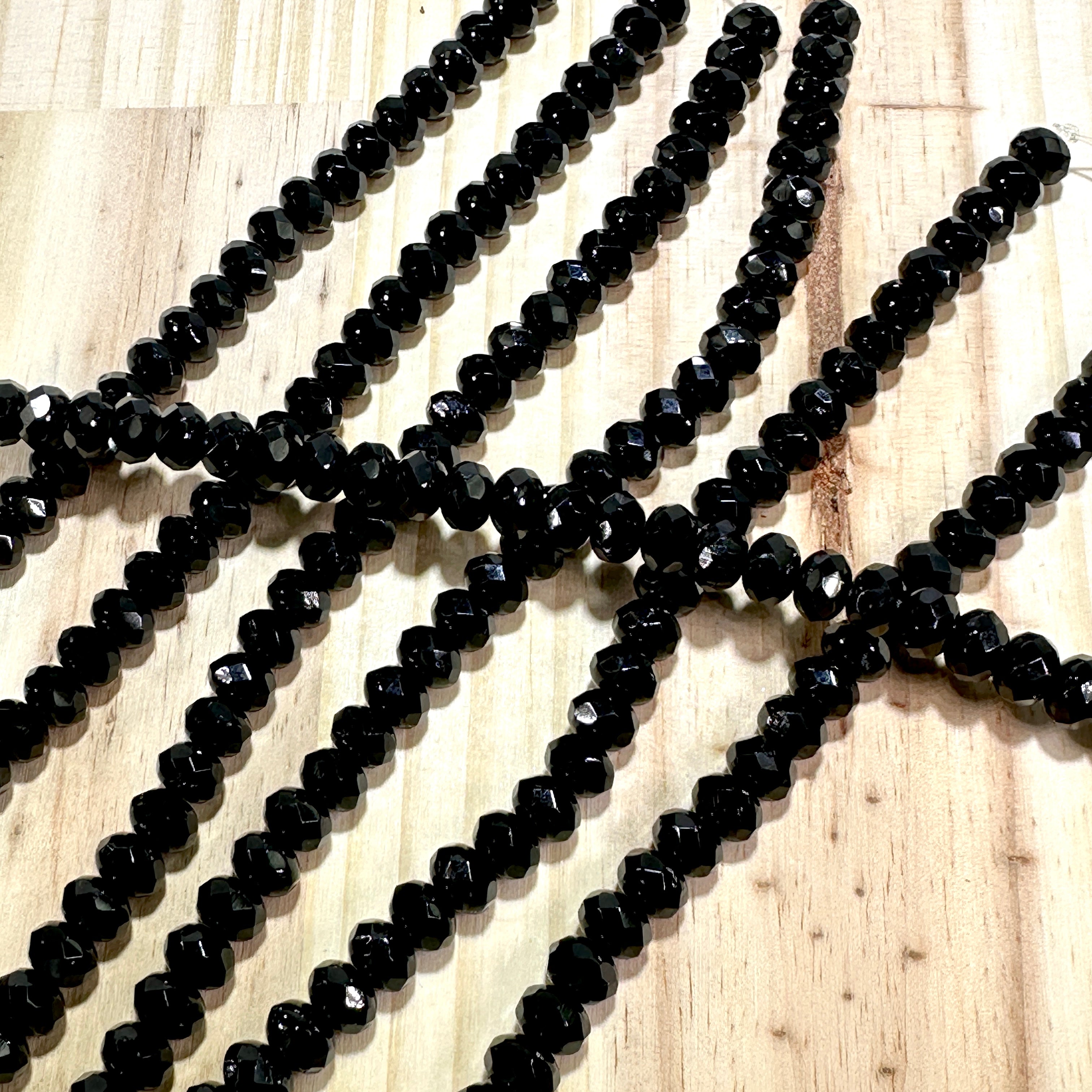 Czech Faceted Glass Doughnut Shaped Fire Polished Rondelle Spacer Beads 3x5mm Jet black tire/donut beads 58pcs J883