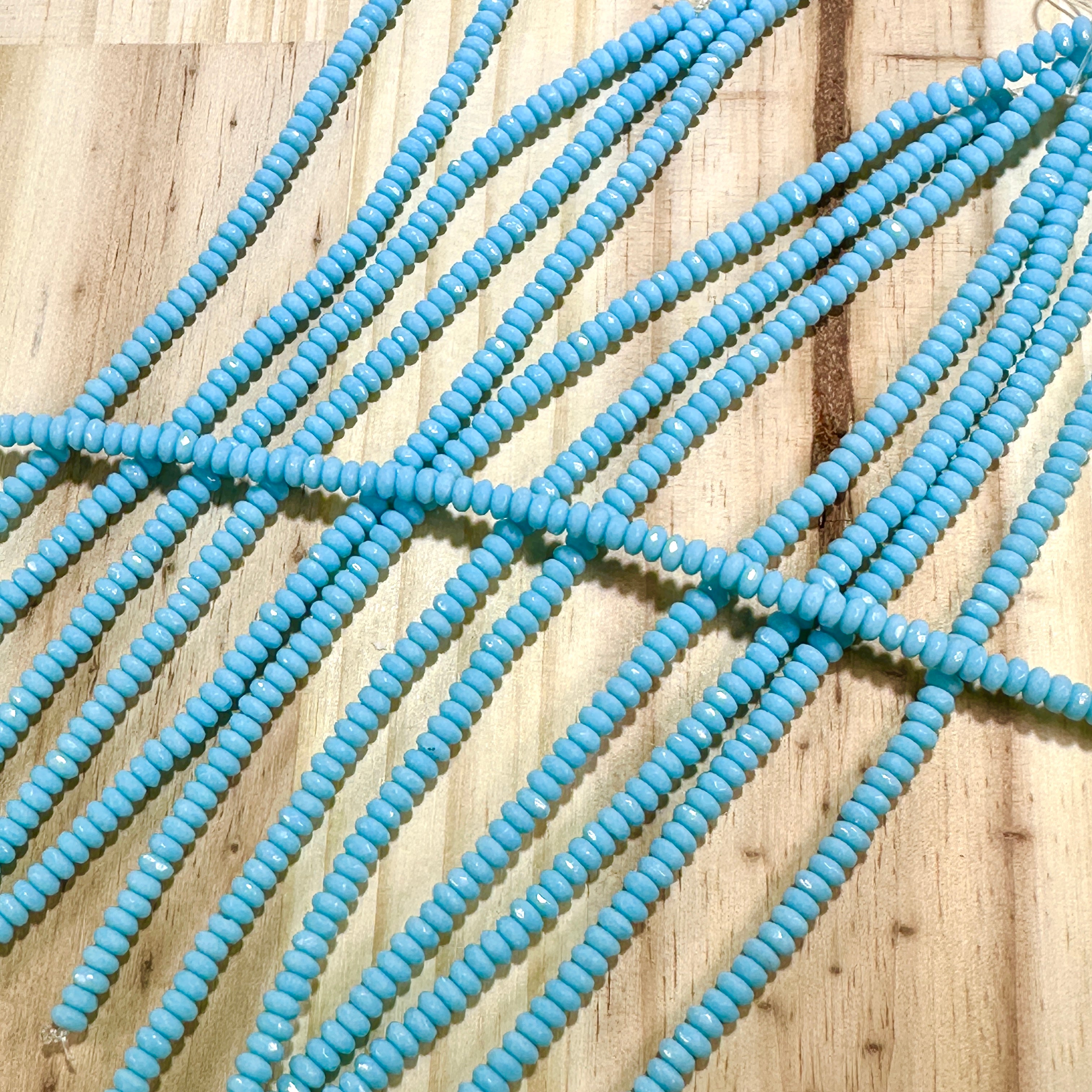 Czech Faceted Glass Doughnut Shaped Fire Polished Rondelle Spacer Beads 3x5mm Blue Turquoise opaque tire/donut beads 58pcs J880