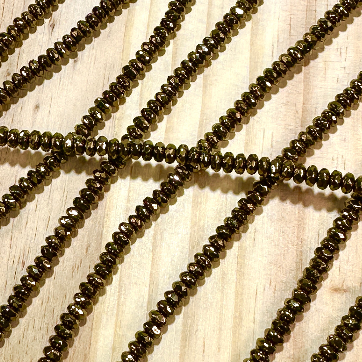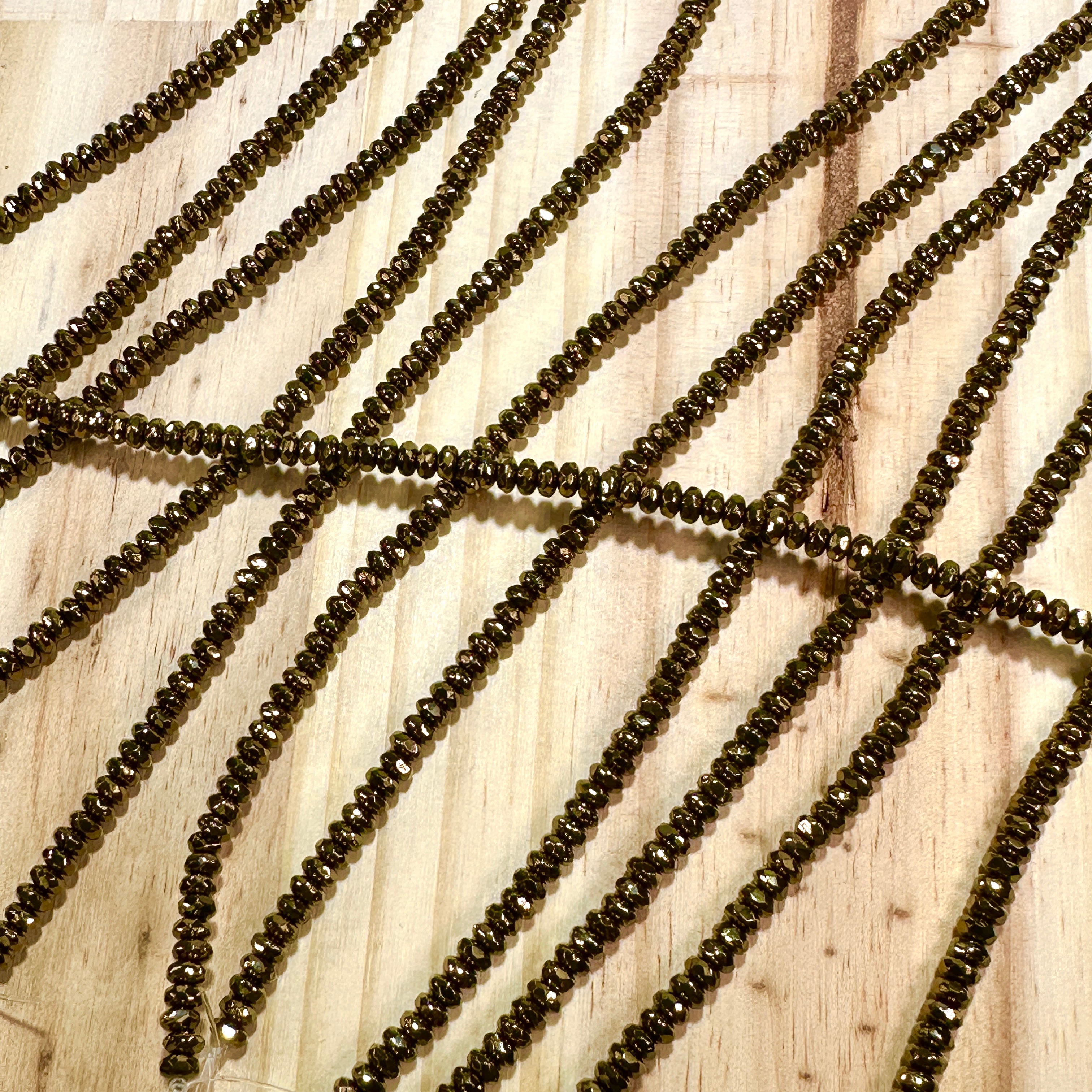 Czech Faceted Glass Doughnut Shaped Fire Polished Rondelle Spacer Beads 2.5x4mm Antique Gold tire/donut beads 72pcs J869