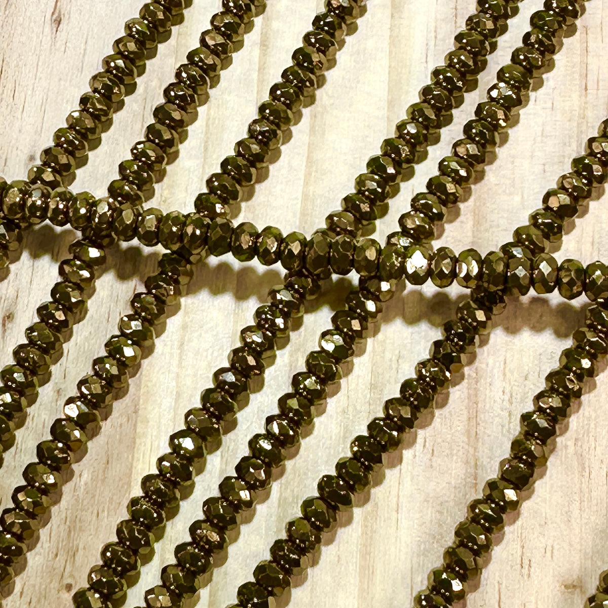 Czech Faceted Glass Doughnut Shaped Fire Polished Rondelle Spacer Beads 3x5mm Crystal Hunter Green Luster tire/donut beads 58pcs J881
