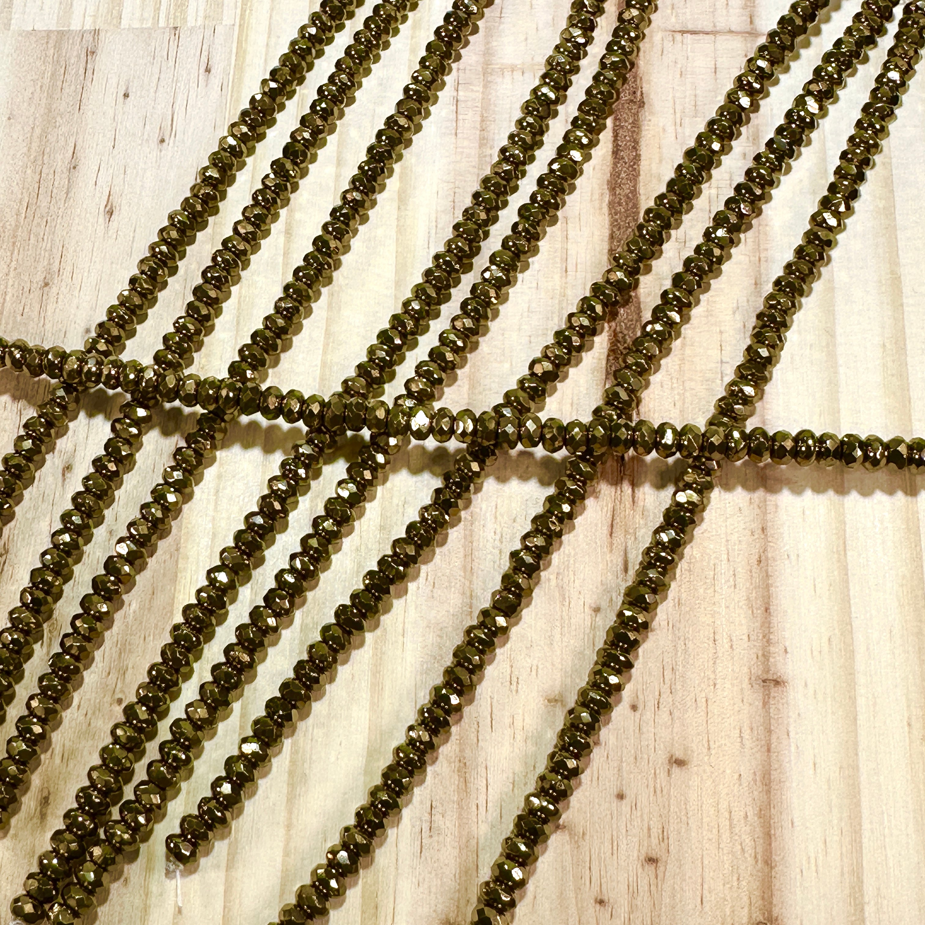 Czech Faceted Glass Doughnut Shaped Fire Polished Rondelle Spacer Beads 2.5x4mm Green Luster tire/donut beads 72pcs J866