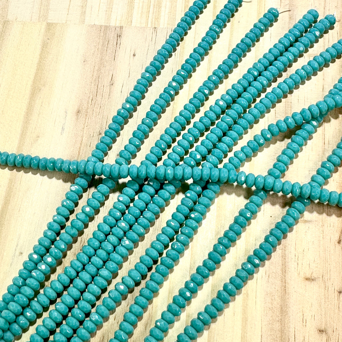 Czech Faceted Glass Doughnut Shaped Fire Polished Rondelle Spacer Beads 3x5mm Green Turquoise opaque tire/donut beads 58pcs J882