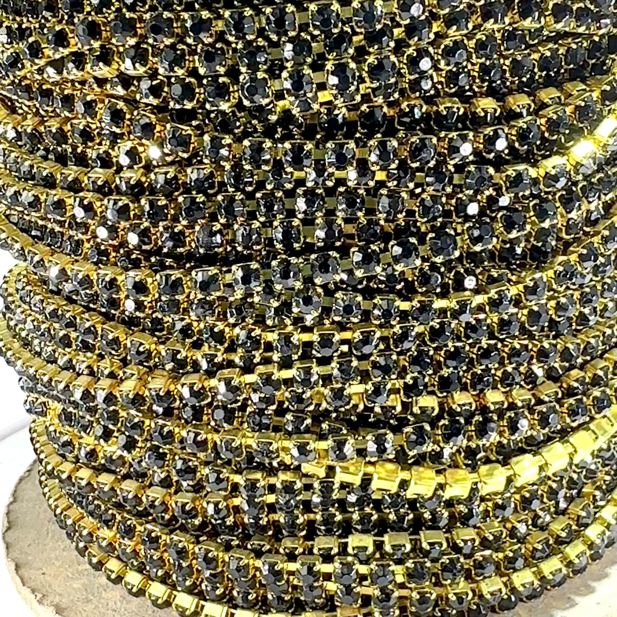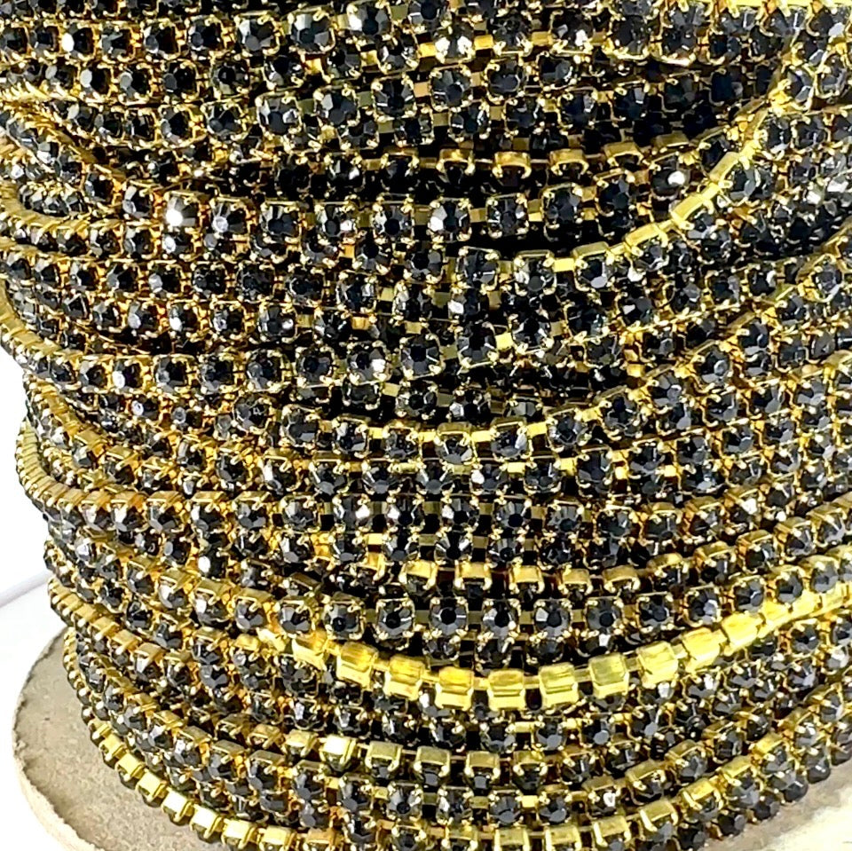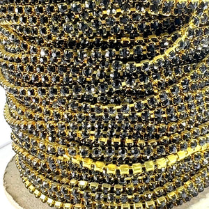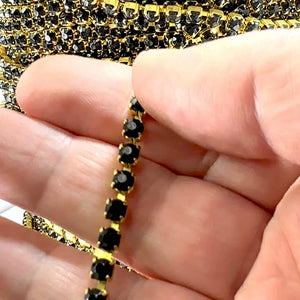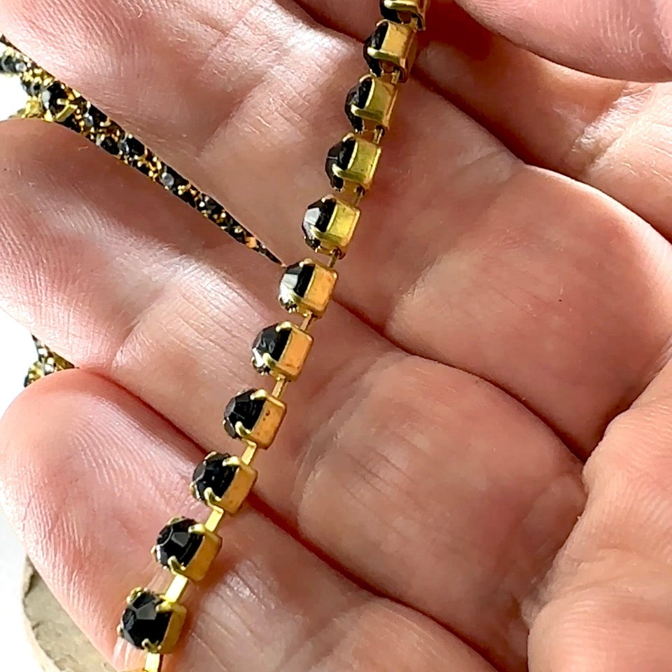 3 feet Swarovski Rhinestone Chain pp32 Jet black Raw Brass G15