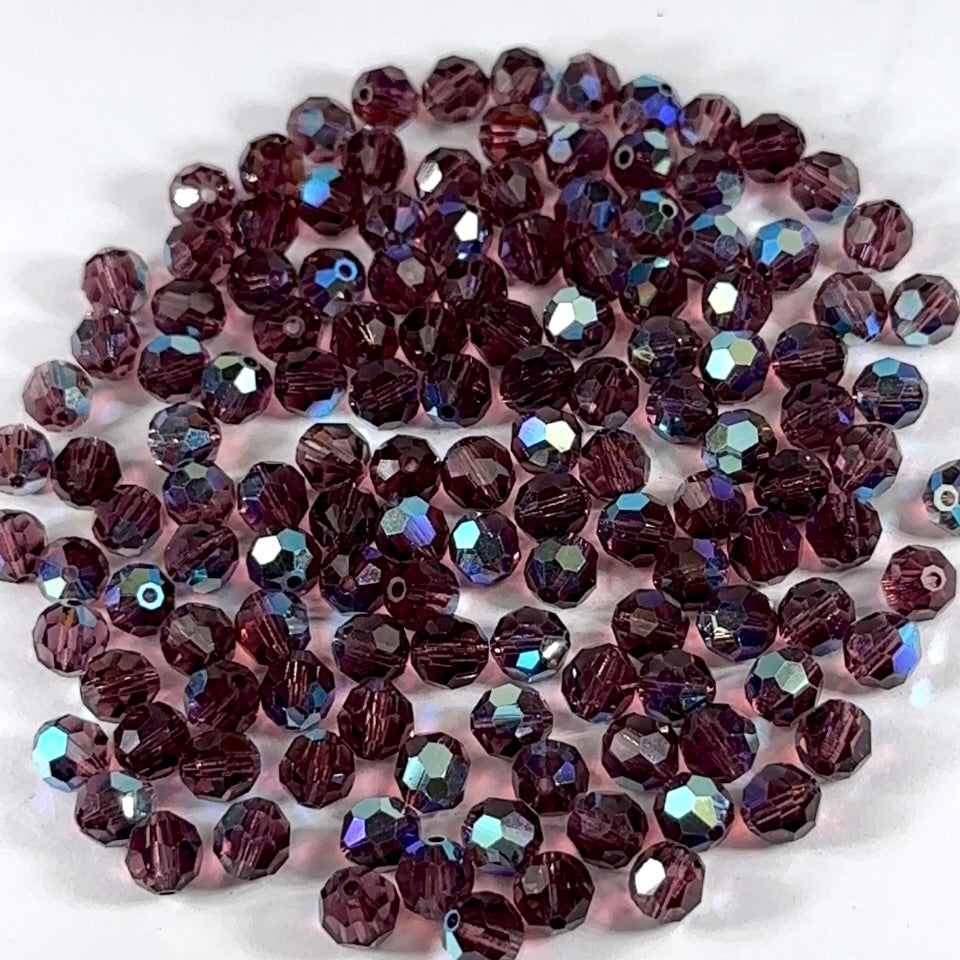 Amethyst AB coated Czech Machine Cut Round Crystal Beads purple with Aurora Borealis 6mm